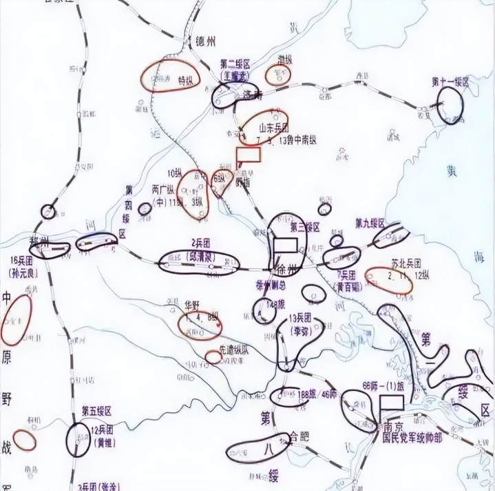 不仅有徐州剿总的军事部署,还有补给仓库位置、津浦铁路补给线情况。